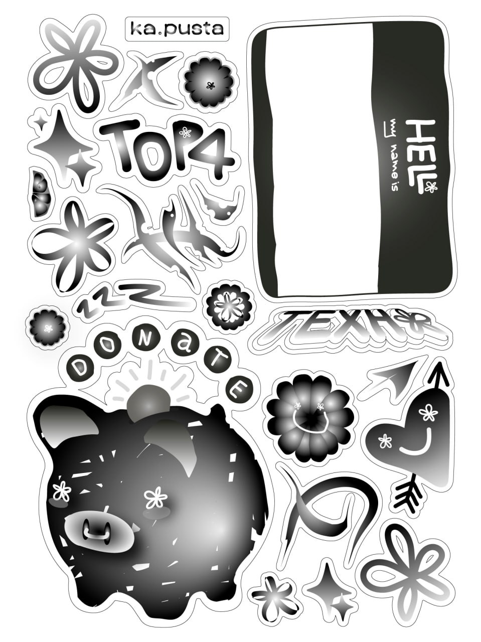The main inspiration for creating new stickers is children and their confidence. Children are not afraid to do their hair or dress brightly, they have a rich imagination and have no limits in their imagination. With the help of her stickers, the author wants to remind everyone of their childishness, sunshine, brightness and warmth.