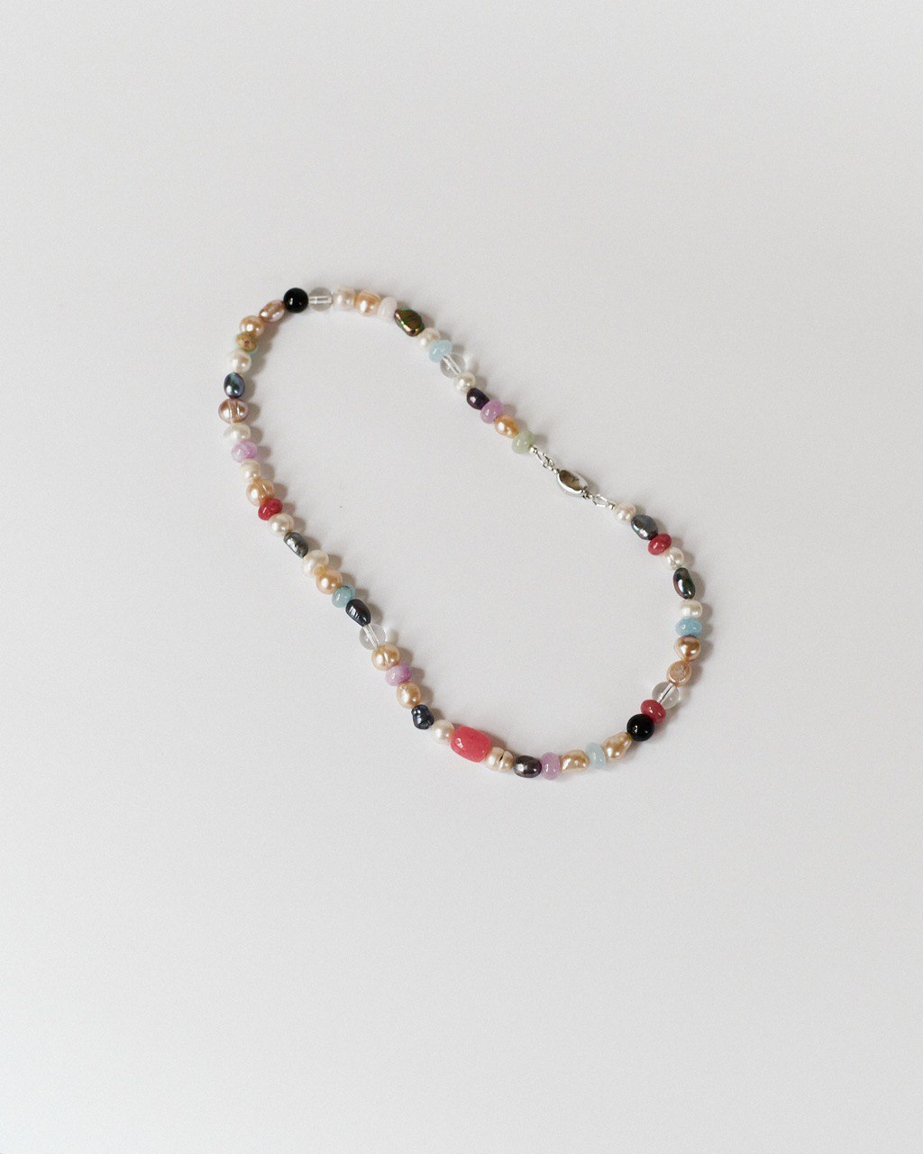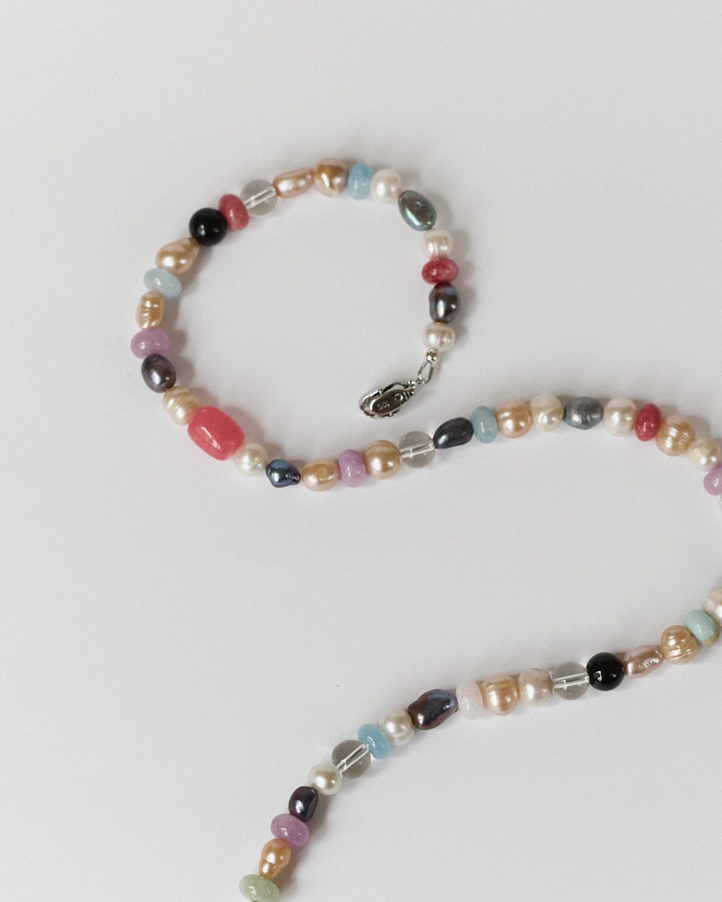 Natural stones, porcelain beads, hematite, glass beads, natural pearls.