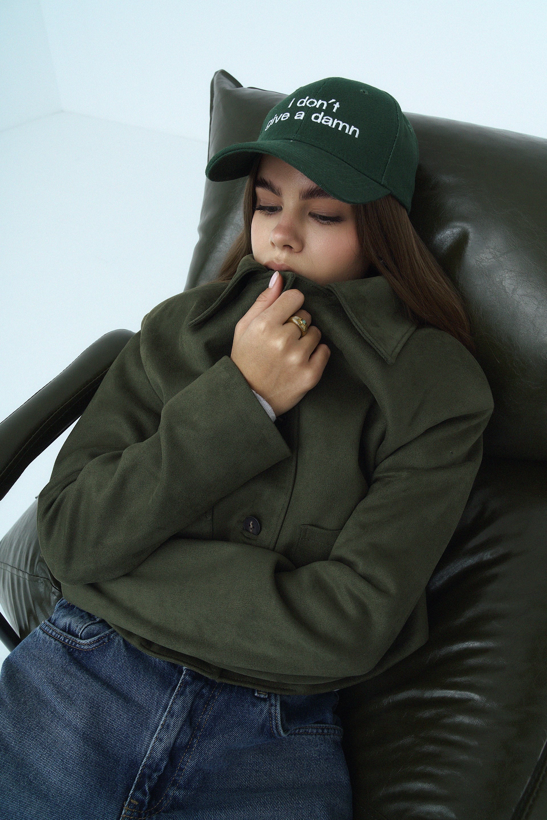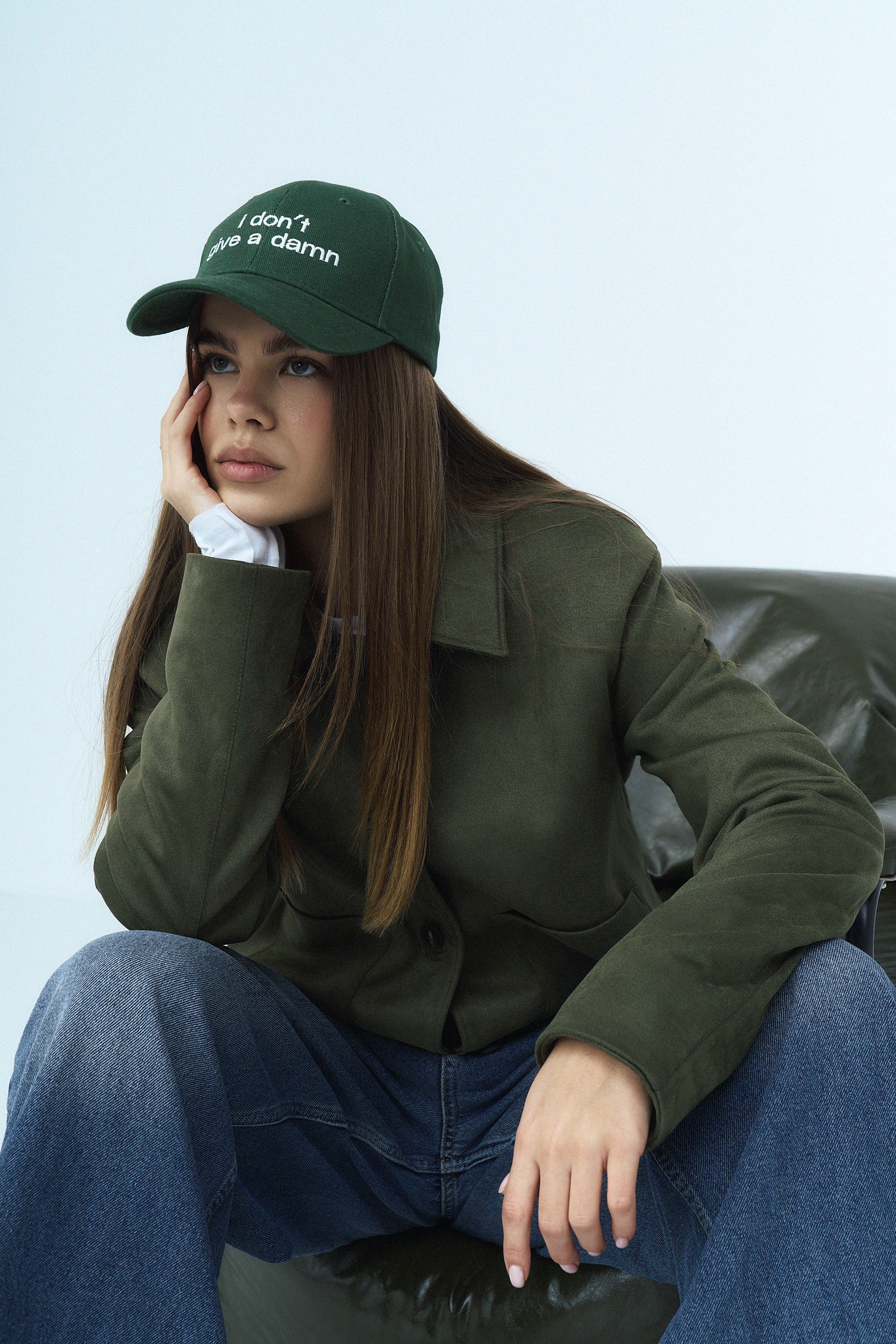 Green cotton cap “I don't give a damn”