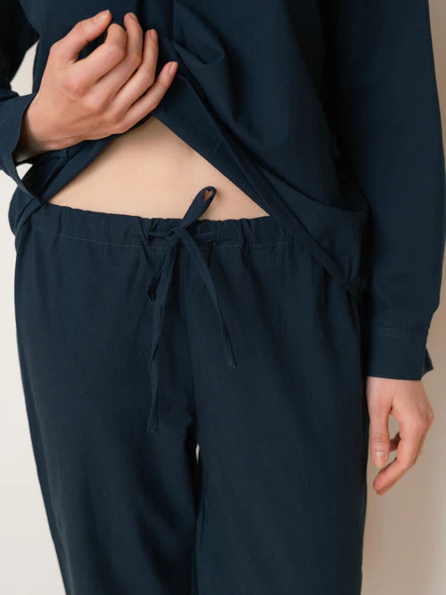 Dark blue boiled cotton pajamas.