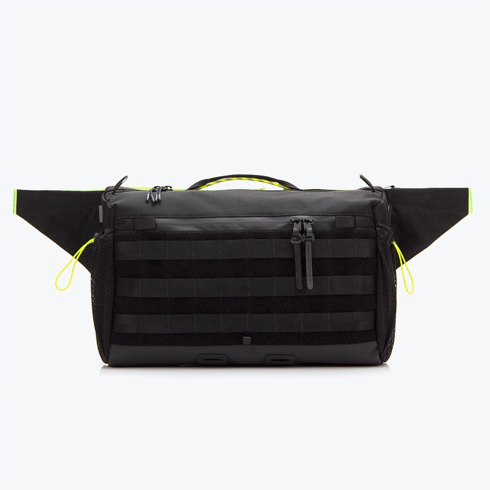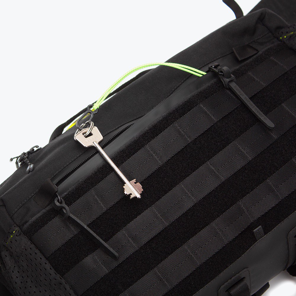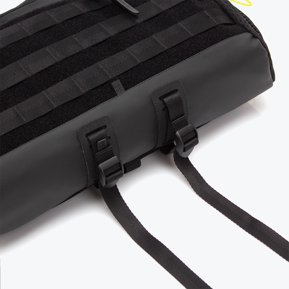 Arakawa Oki - is an enlarged version of the beloved Arakawa slingpack, designed for secure laptop carrying. It features a MOLLE system and a dedicated compartment for a 14" MacBook or a laptop of similar size. Perfect for city rides or walks.