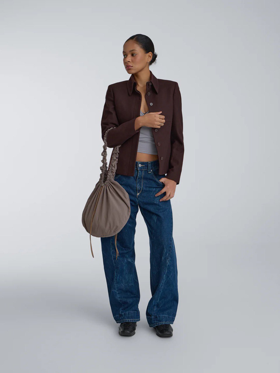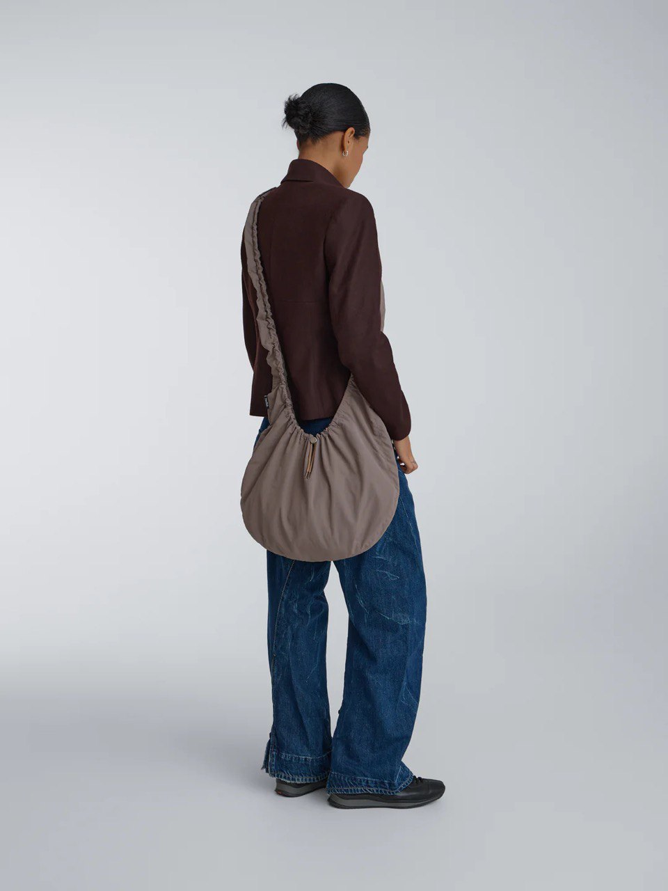 This functional raincoat-style bag is a perfect addition to your everyday routine this season. Available in four colors: brown, black, mocha, and light gray. The bag length is adjustable with stoppers, complementing the minimalist design of the model.