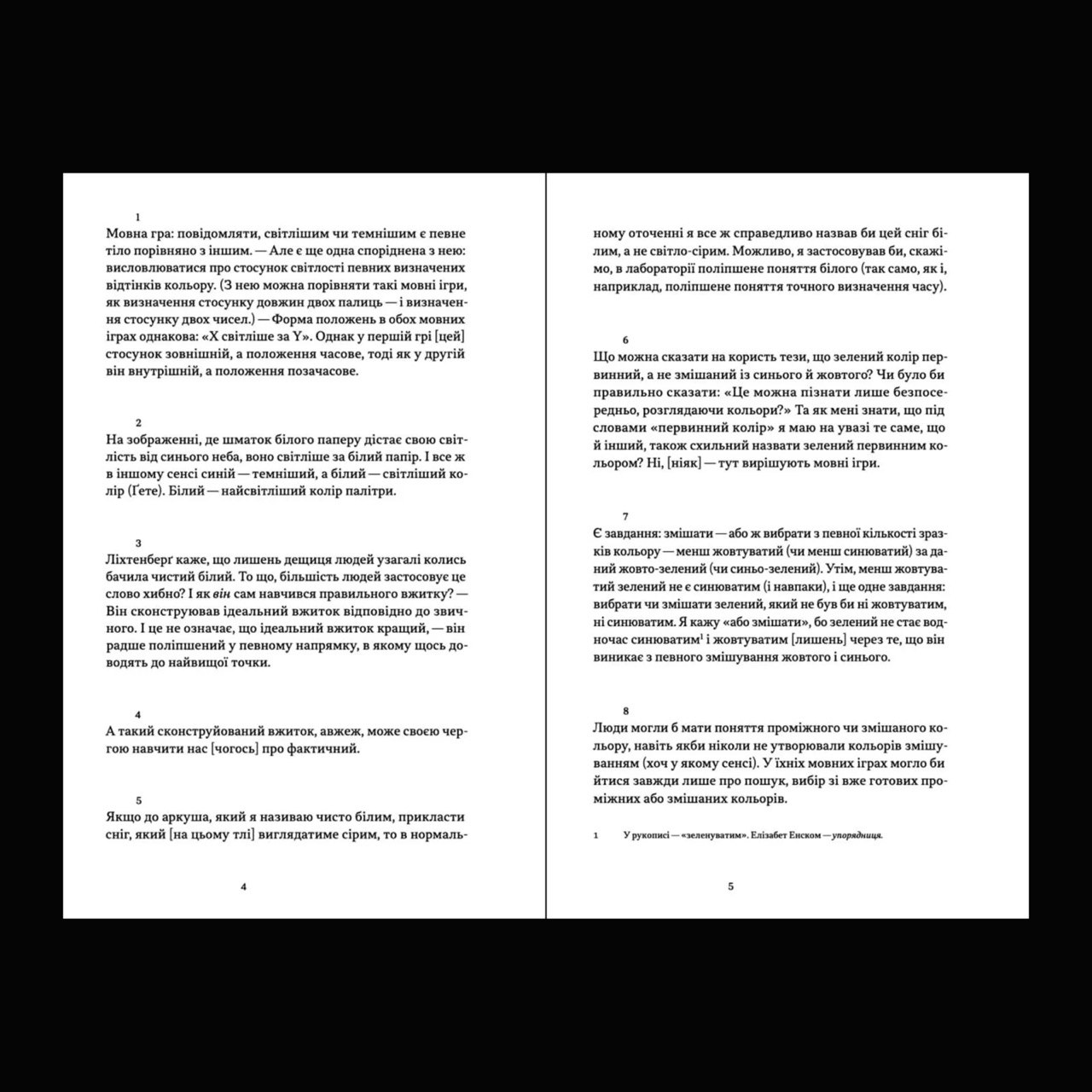 Wittgenstein argues with Goethe and Runge, discusses colors that are impossible to conceive, talks about blindness and color blindness, and ultimately shows the connection between language games and the use of words to denote color. Seemingly fragmented and chaotic, Wittgenstein's text, on the one hand, offers a new perspective on the philosophical problem of color, and on the other, continues the tradition.