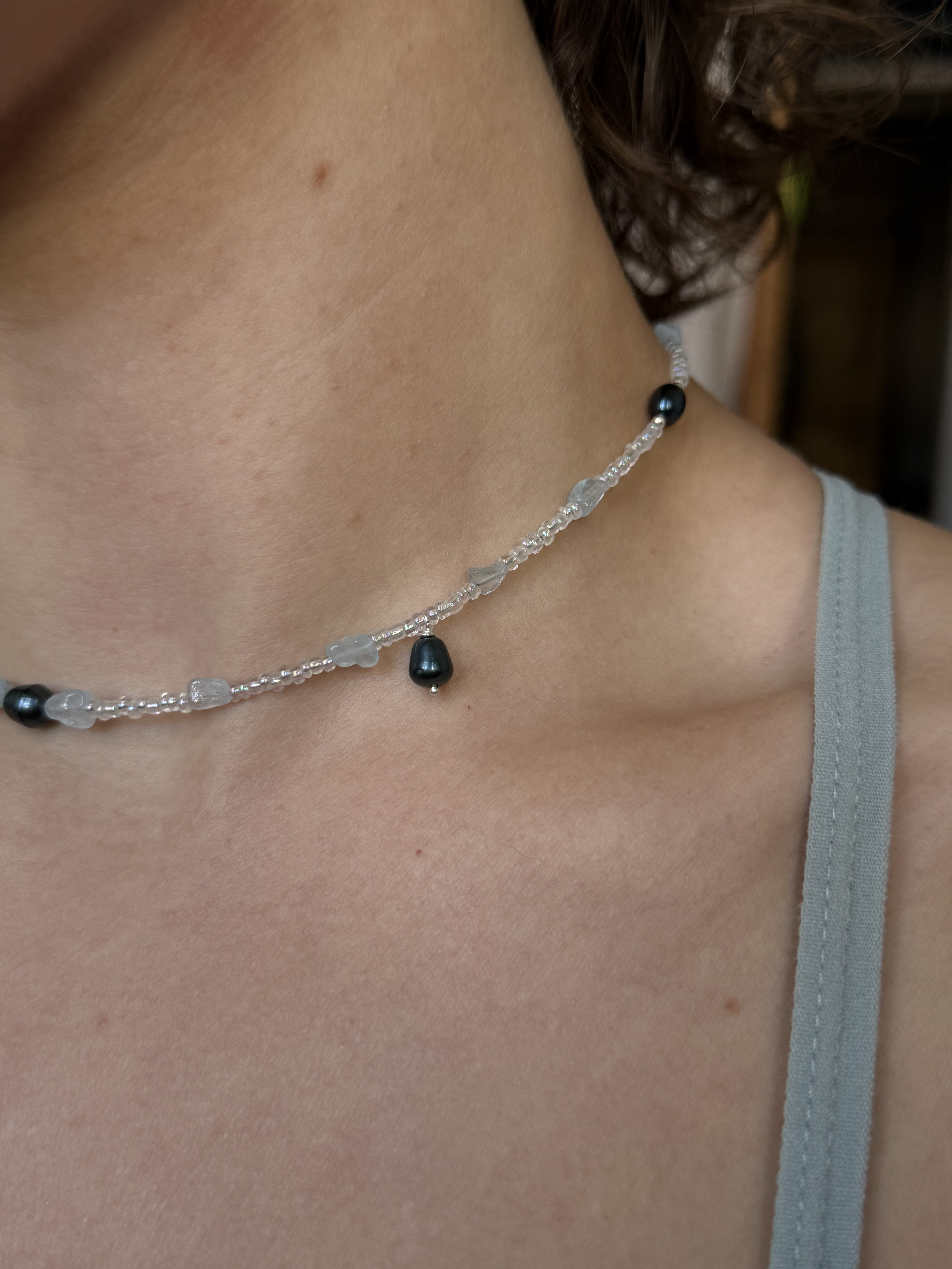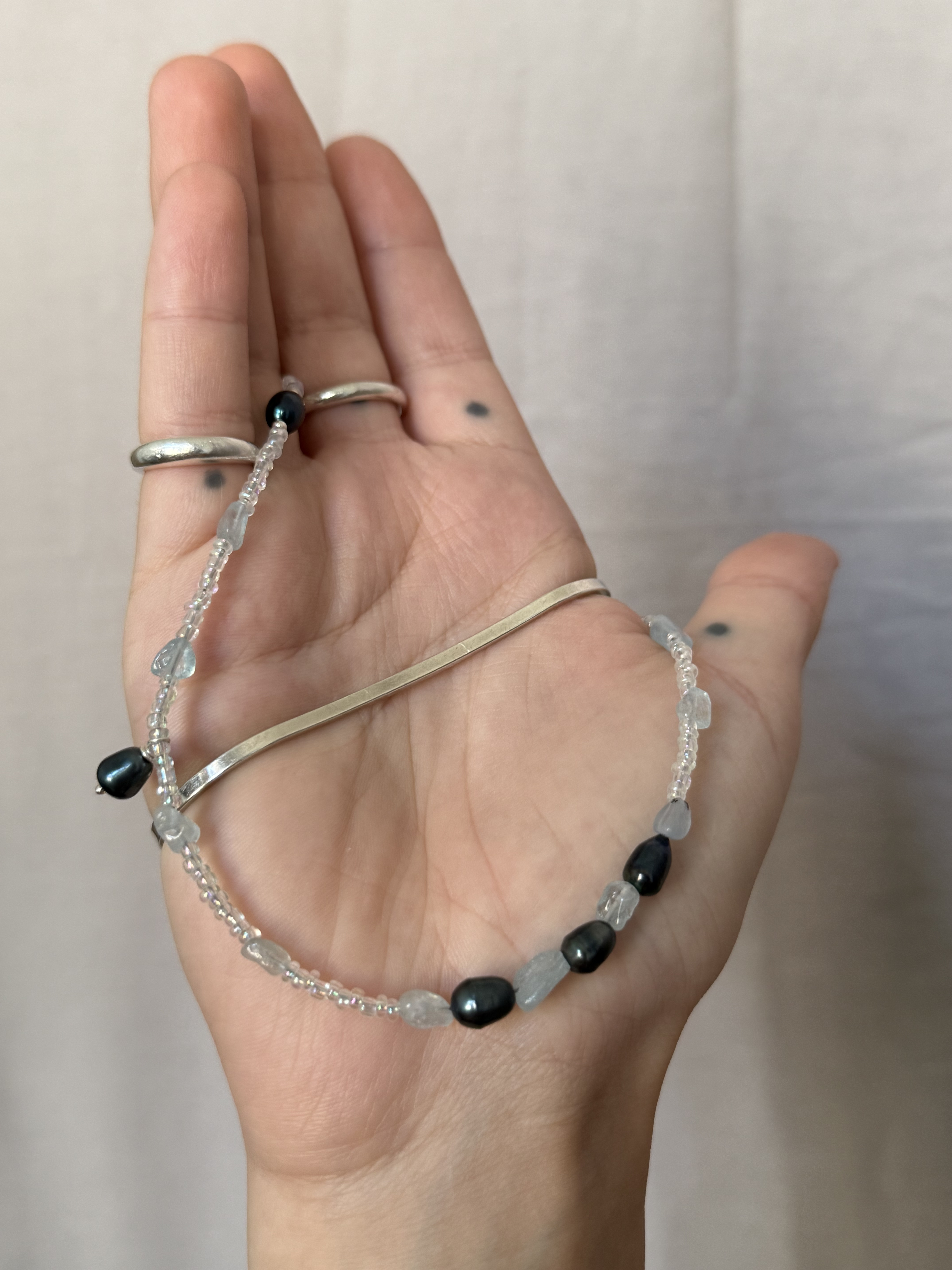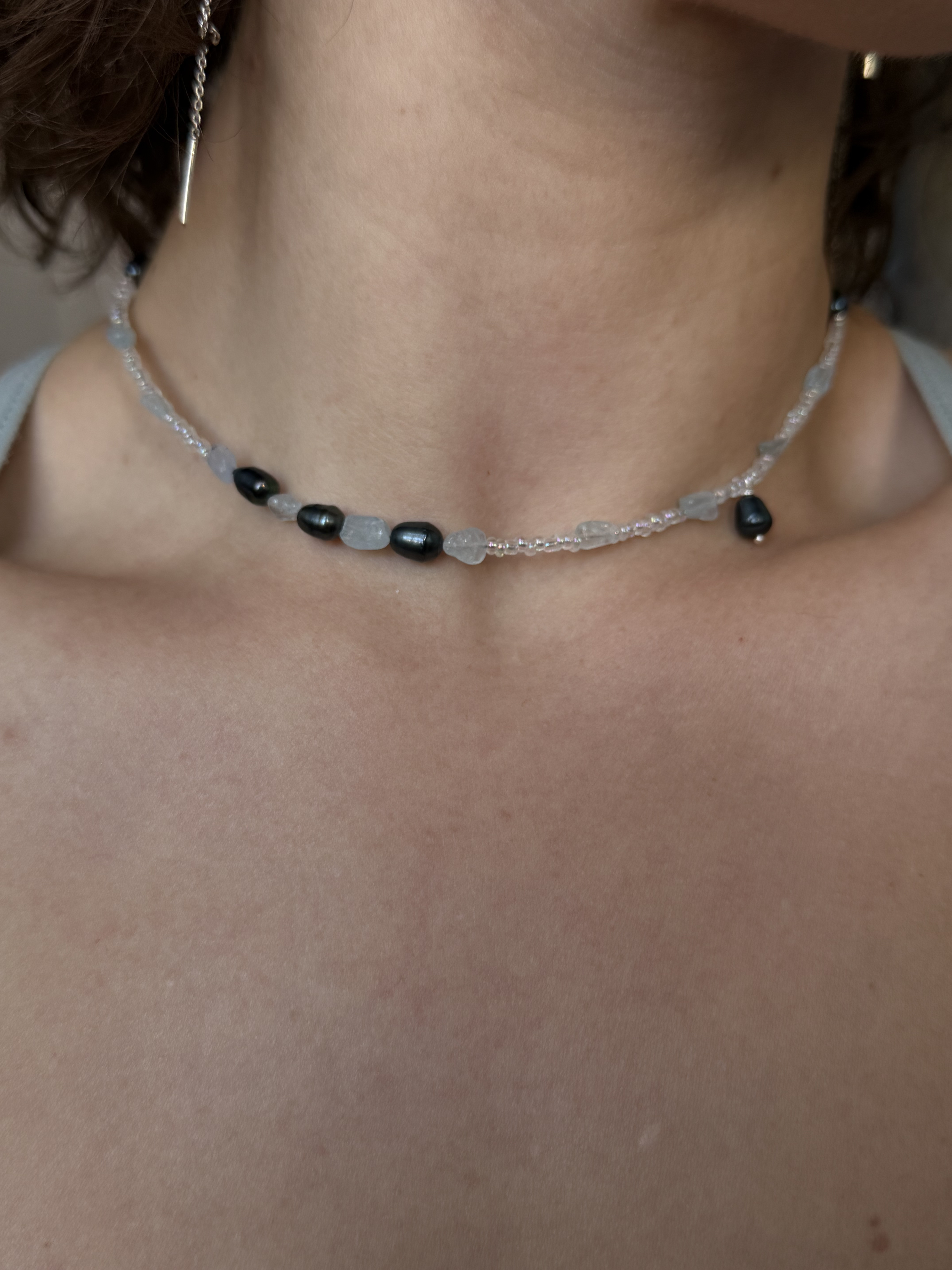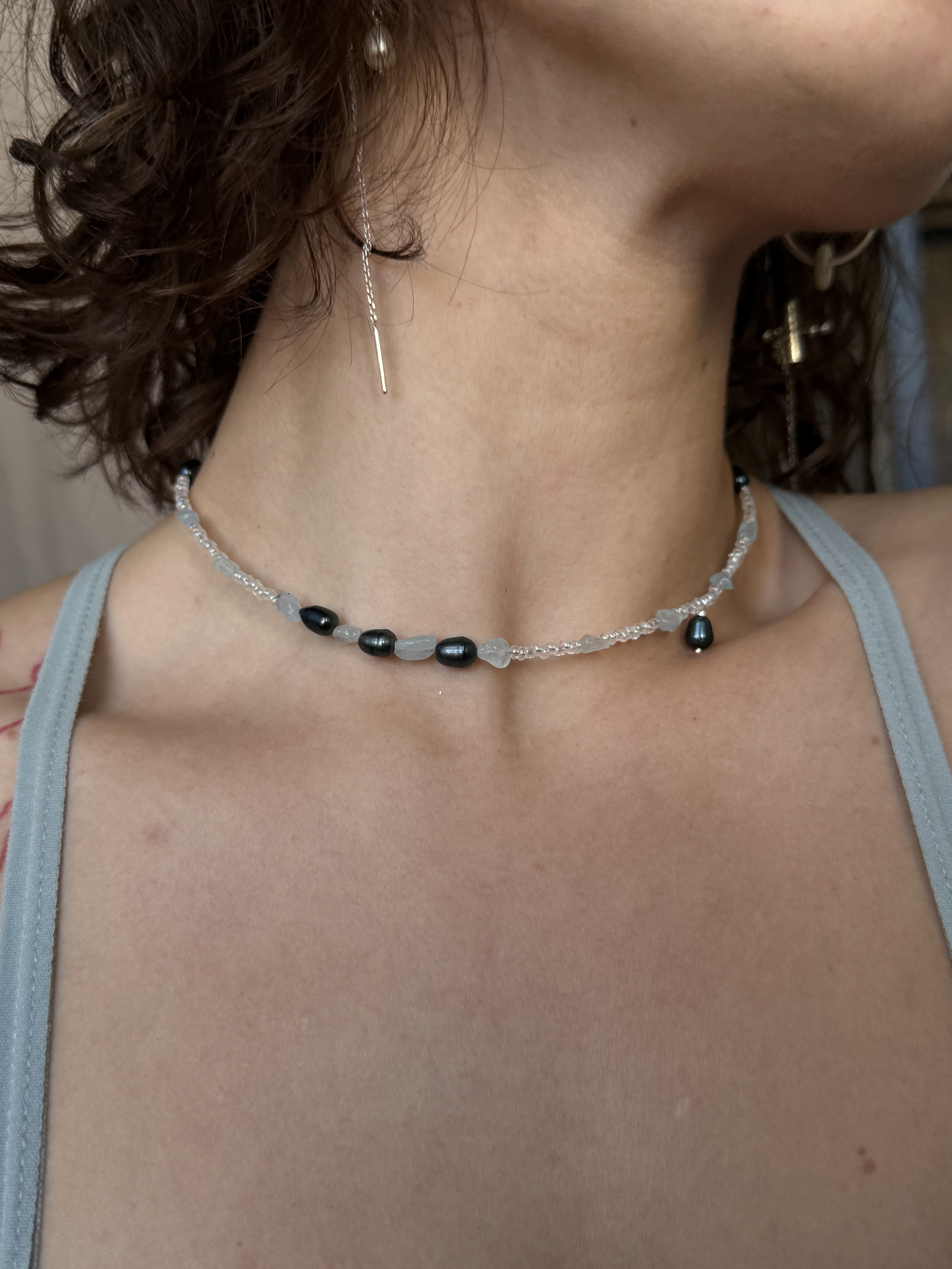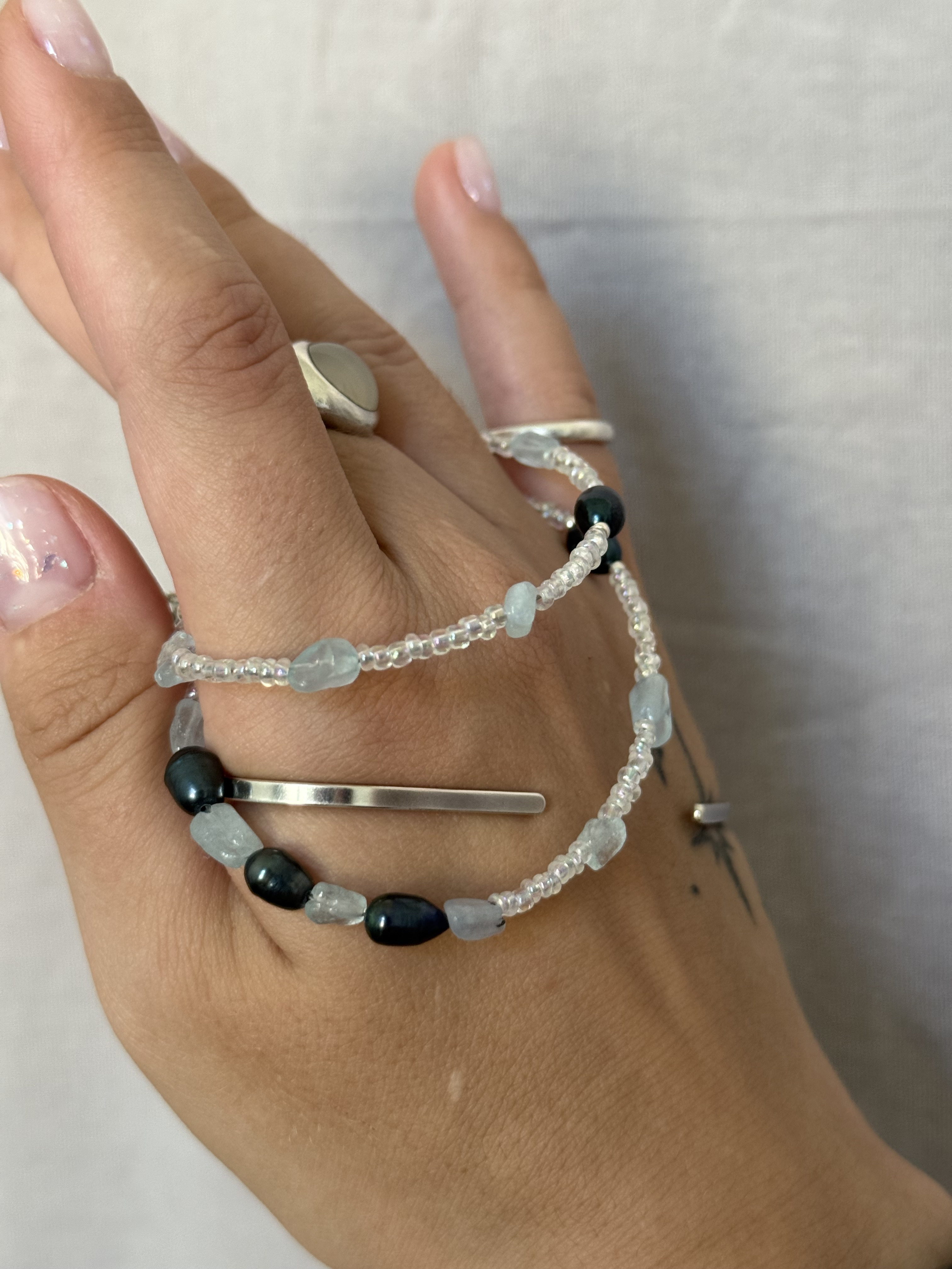 Матеріали: Натуральні річкові перлини, аквамарин, бісер.
