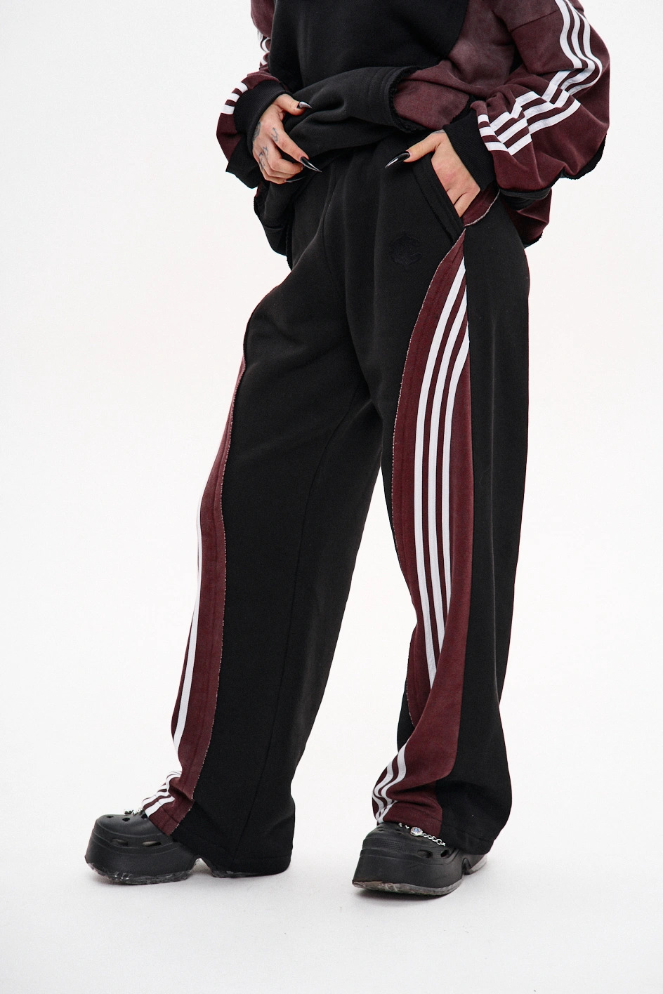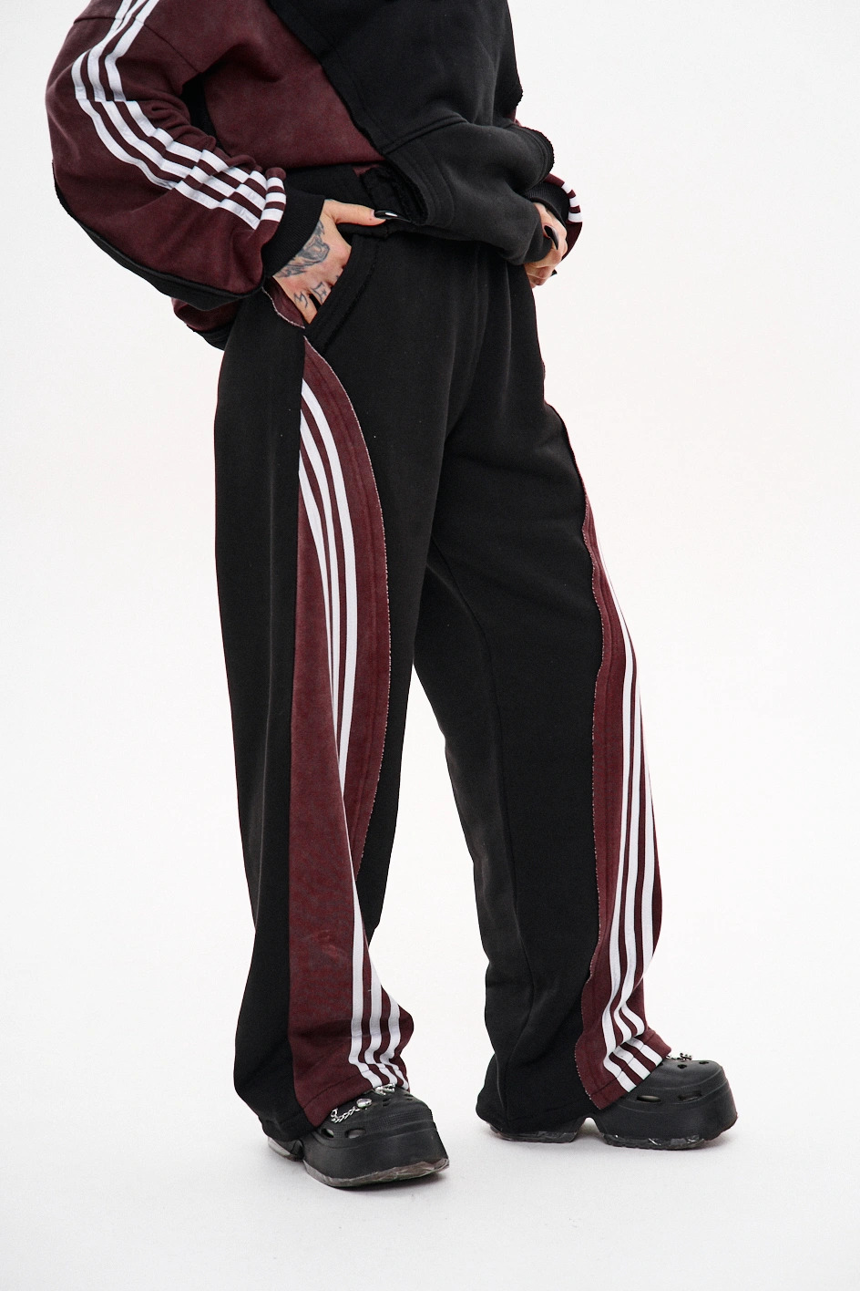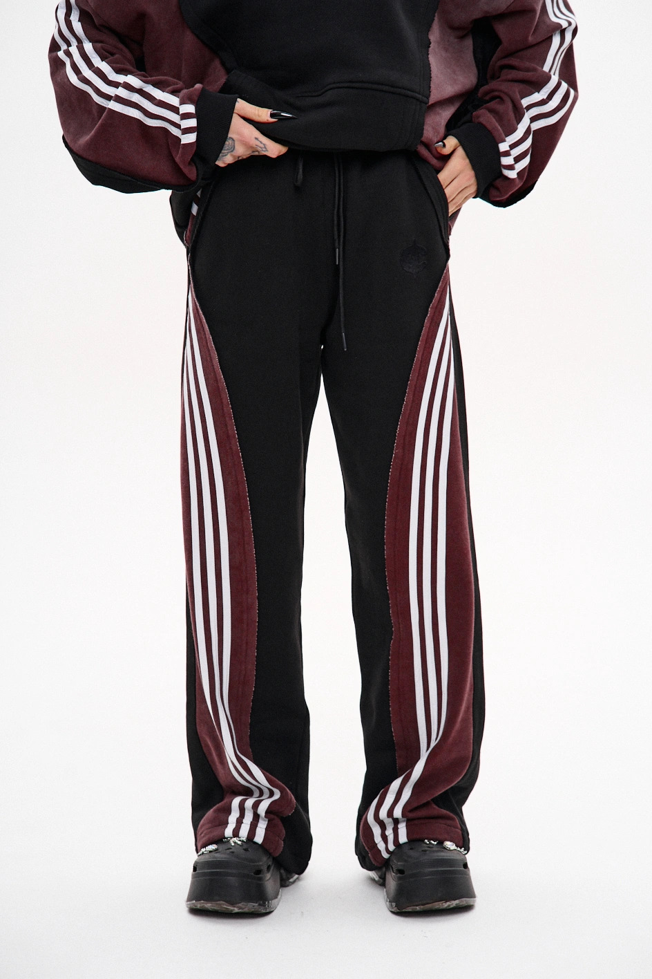 Штани мають дві передні кишені, пояс на резинці зі шнурком і затяжку на шнур-резинку внизу.