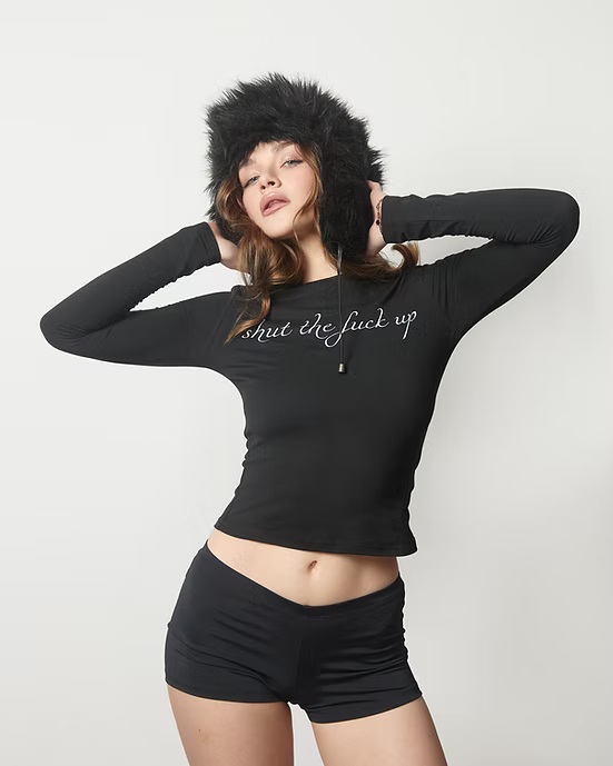 Приталений крій підкреслює фігуру й додає впевненості, а зухвалий напис говорить сам за себе. Комфортний для щоденного носіння, легко стилізується та працює як акцент у луках.