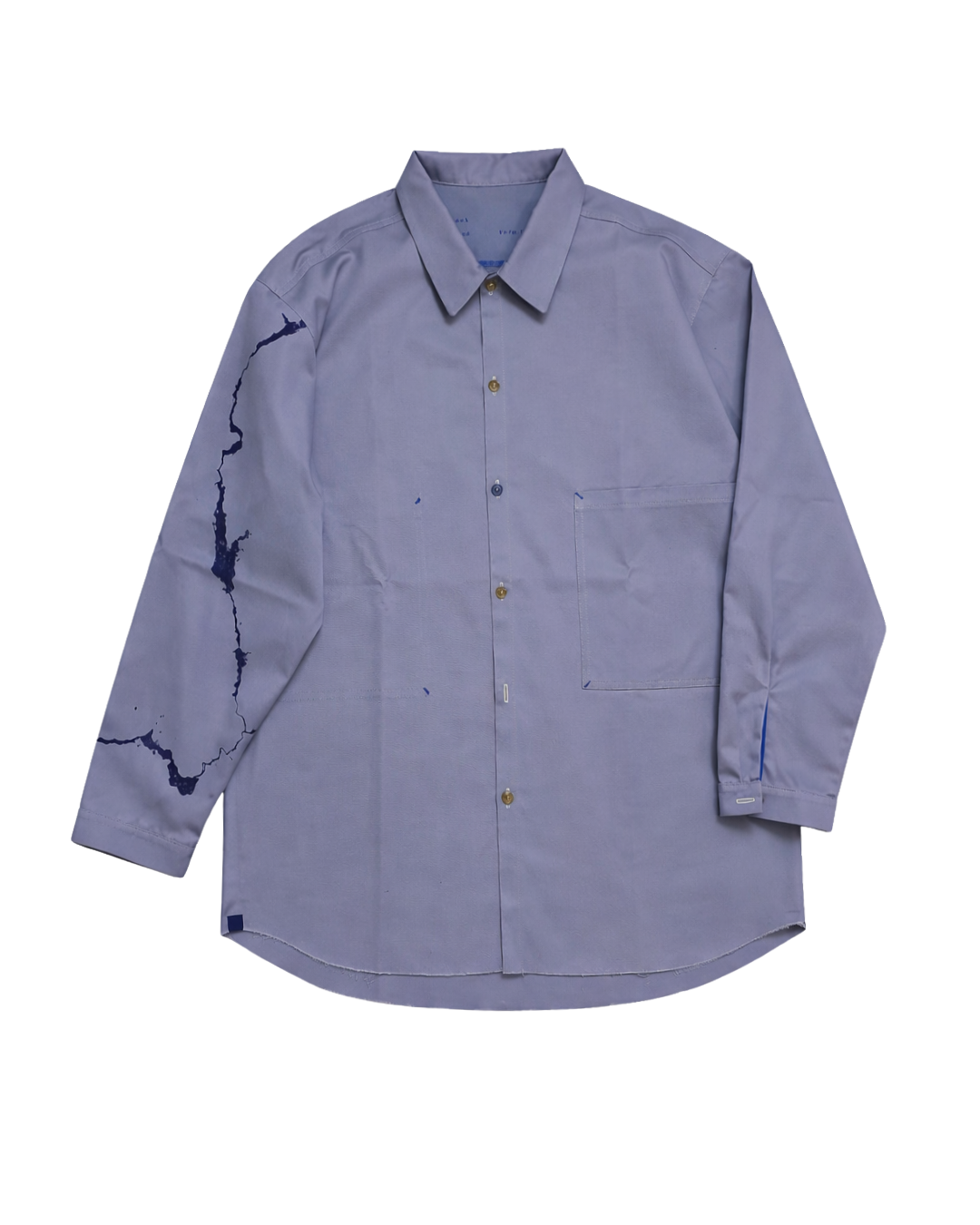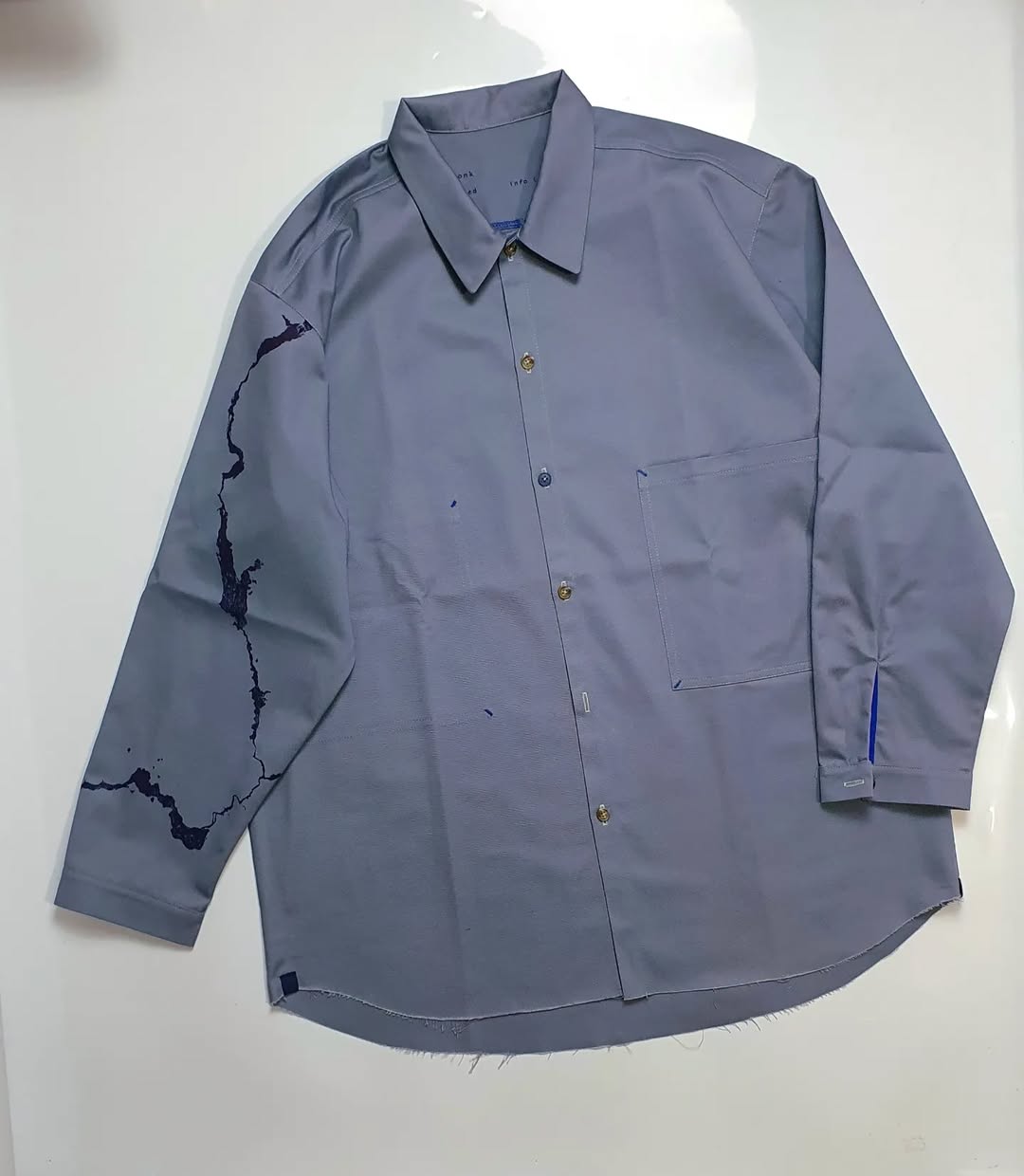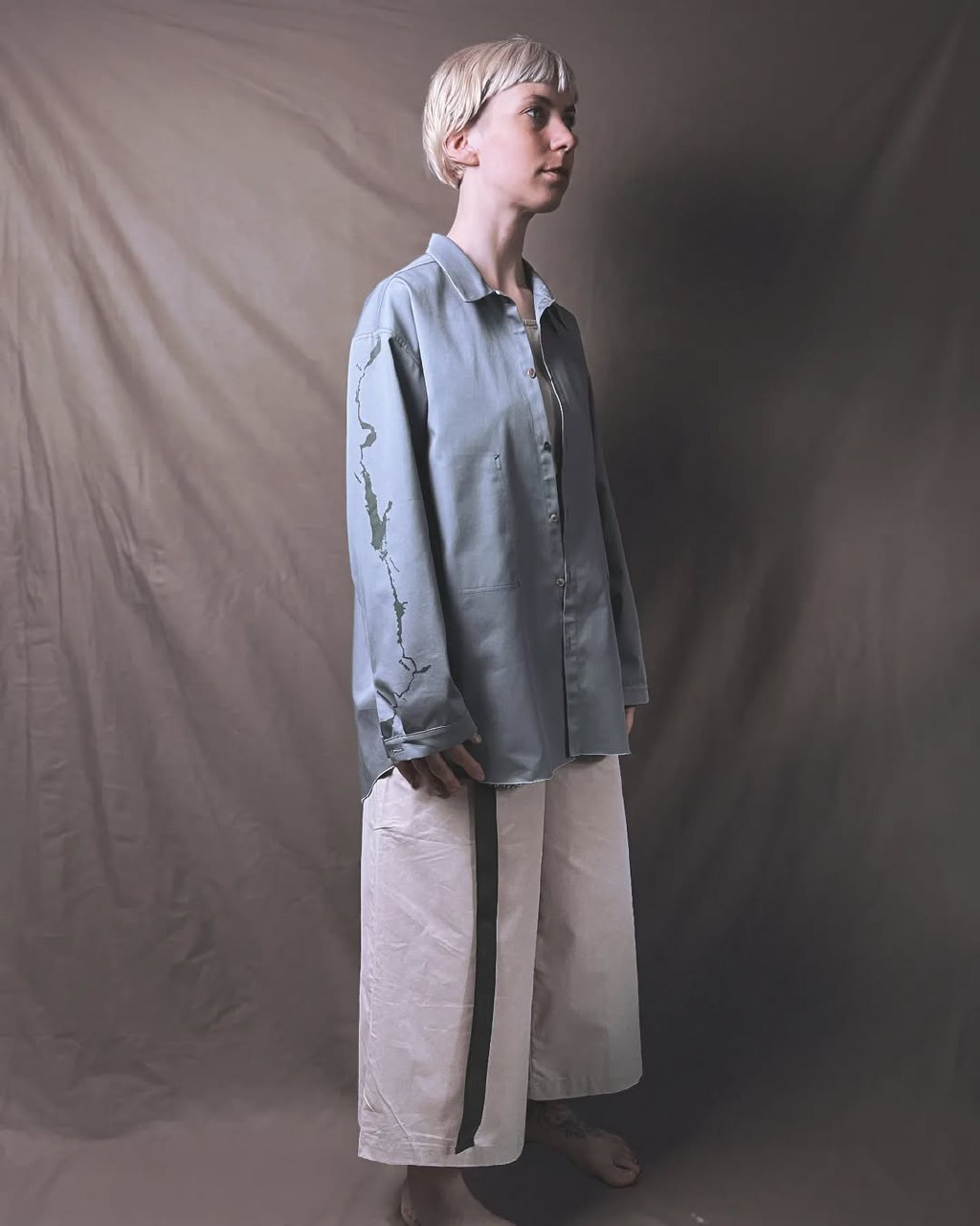 Сіро-блакитна сорочка з саржі Дніпро (Україна) з принтом по рукаву