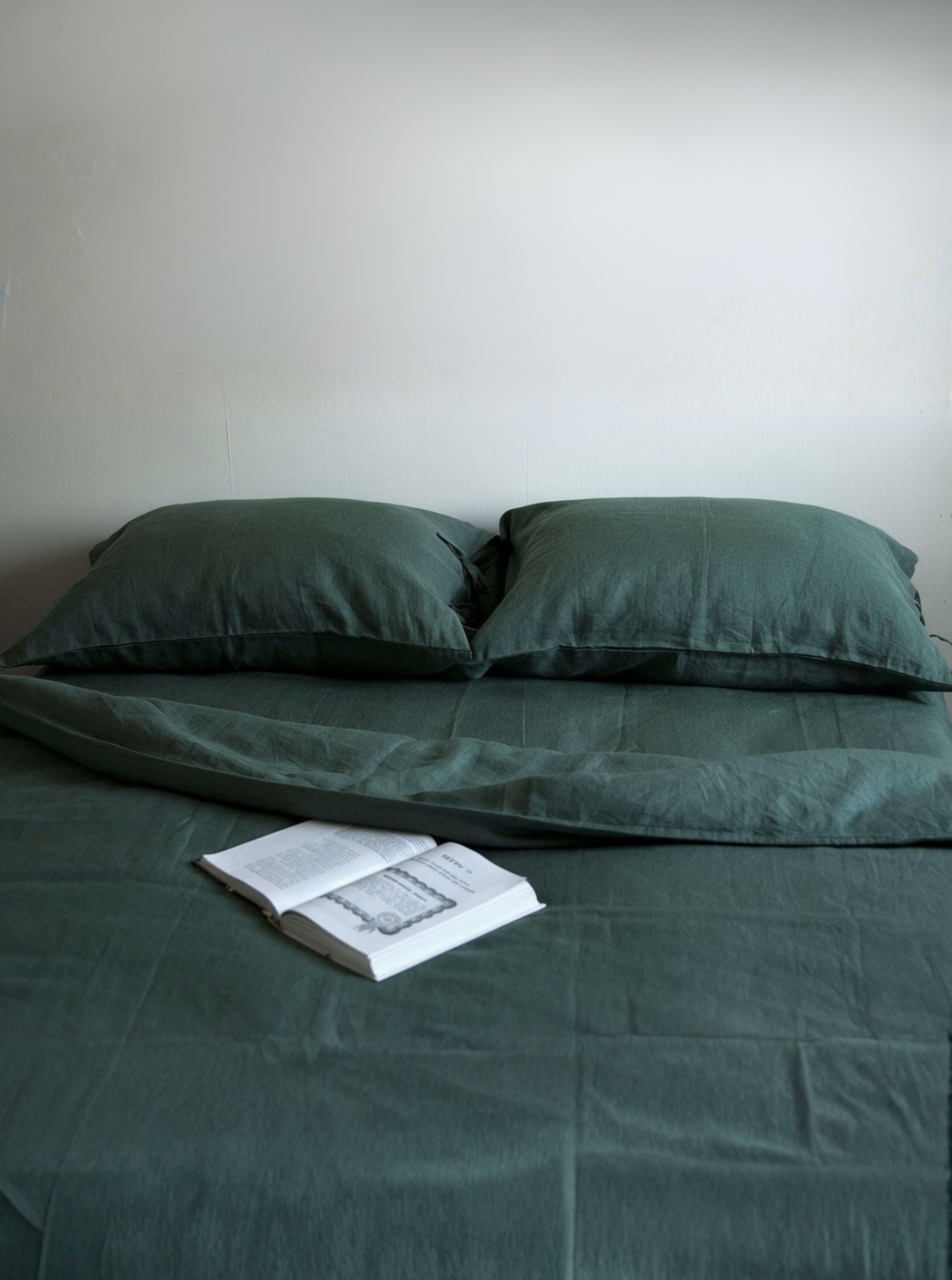 Однотонний комплект із зеленого льону