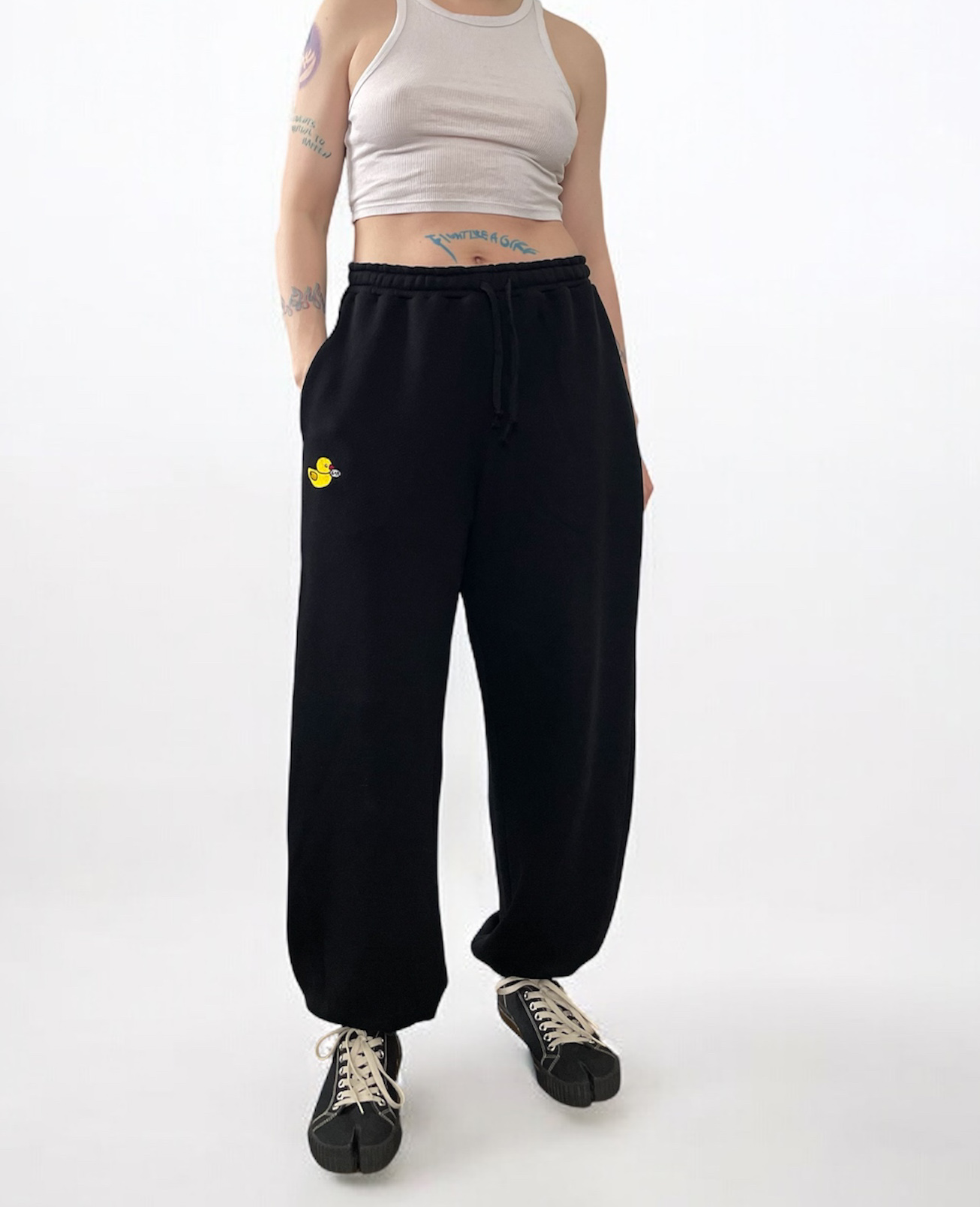 Штани чорні з вишивкою Качечка
